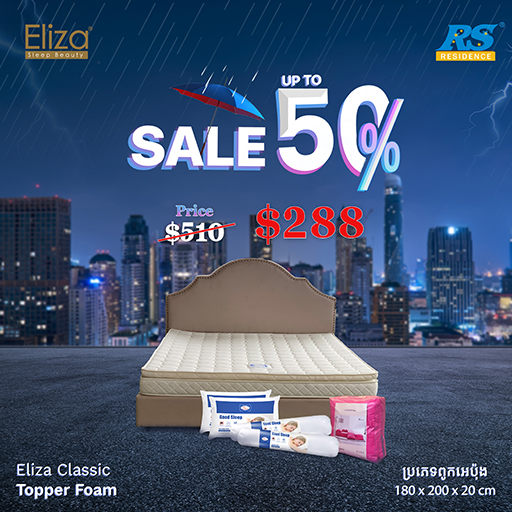 ពូកម៉ាក 𝐄𝐥𝐢𝐳𝐚 𝐂𝐥𝐚𝐬𝐬𝐢𝐜 𝐓𝐨𝐩𝐩𝐞𝐫 𝐅𝐨𝐚𝐦 (អេប៉ុង)